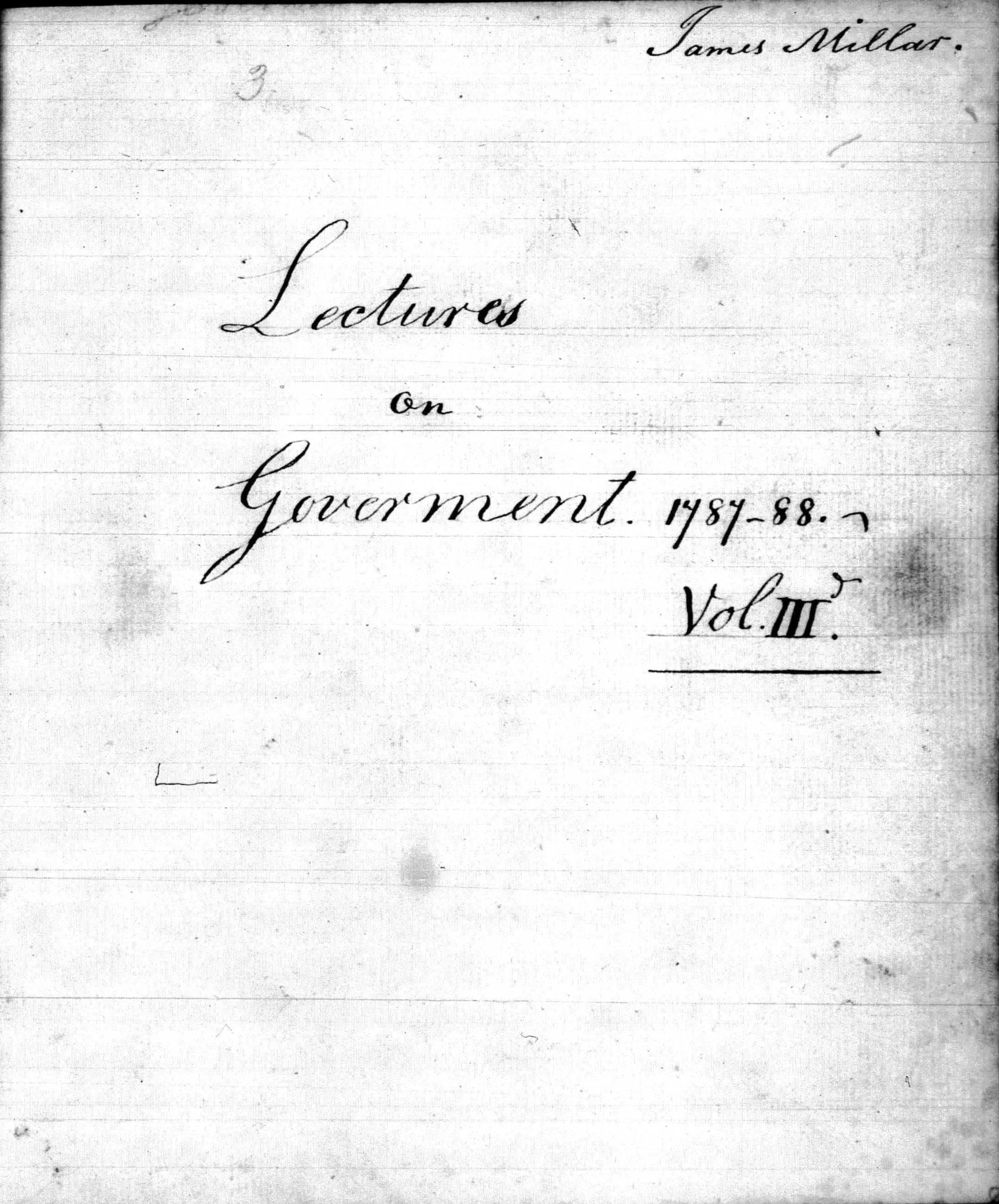 Transcriptions of John Millar’s Lectures on Government given at Edinburgh University, 1787-88.